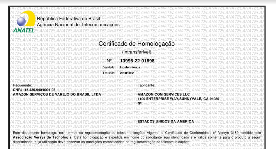A Amazon homologou na Agência Nacional de Telecomunicações (Anatel) na última sexta-feira (26), um novo dispositivo registrado sob o número de modelo P4N6AC aparentando se tratar do Fire HD, tablet da marca que também passou recentemente pela FCC, autoridade dos Estados Unidos, e pode ser lançado no Brasil em breve.